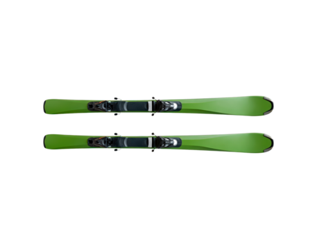 Vibrant green skis on black background for winter sports equipment on transparent background