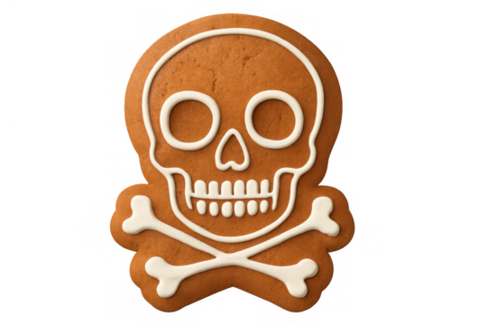 Gingerbread cookie skull and crossbones creating a spooky halloween treat for festive holiday dessert themes
