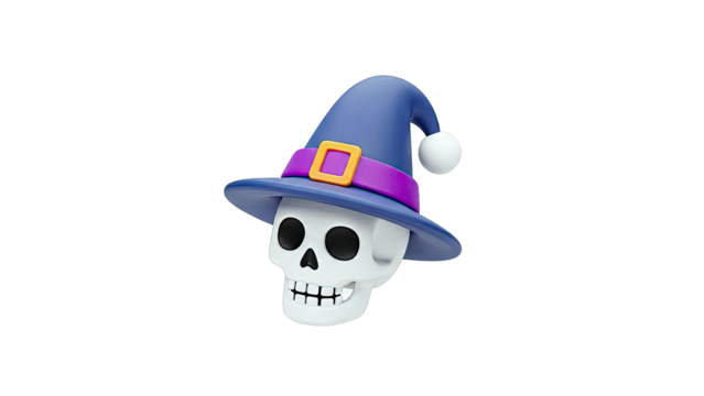 Cartoon skull icon with vibrant glitch effect on transparent background