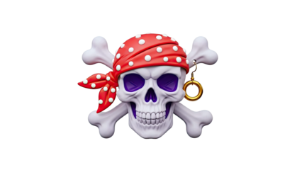 Embroidered pirate skull with red bandana and crossed bones isolated on a transparent background crossbones