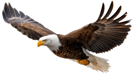 a spread wing bald eagle soars in the sky isolated on white background PNG. GENERATIVE AI