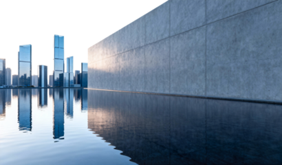 Modern City Skyline with Reflections and Cloudy Sky Illustration