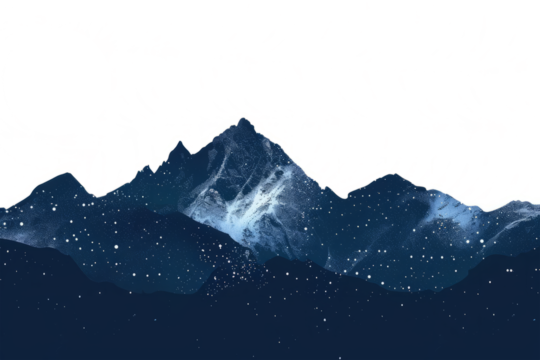 Minimalist of a mountain landscape at night, stars twinkling, white base