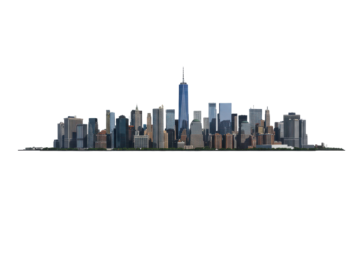 Bangkok city skyline with tall skyscrapers and a green park in the foreground, isolated on a white background. Urban architecture and nature contrast concept