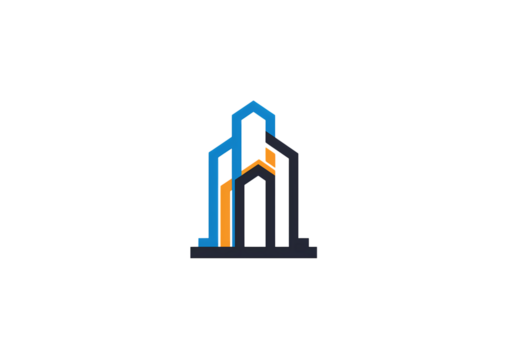 Modern Skyscraper Icon: Blue, Gold, and Black Building Silhouette isolated on transparent background