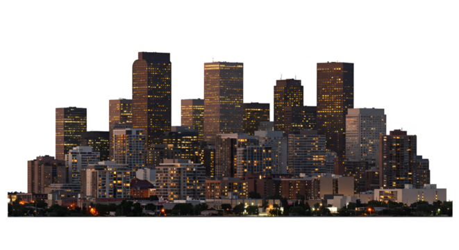 Cityscape illustration with skyscrapers on transparent background