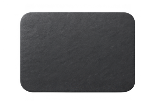 Dark slate stone cutting board or placemat with rounded corners, natural serving tray surface on transparent background