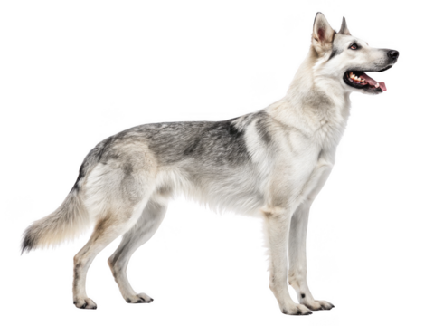 A beautiful siberian husky with striking blue eyes sits attentively, isolated on transparent background