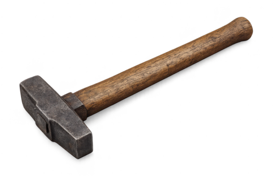 Heavy sledgehammer with wooden handle isolated PNG, blacksmith tool for demolition and construction work, industrial equipment on transparent background