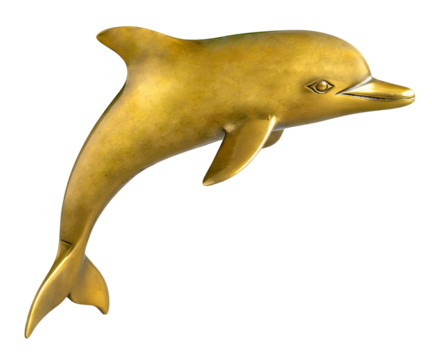 Gold dolphin metal sculpture elegant ocean animal wall decoration piece