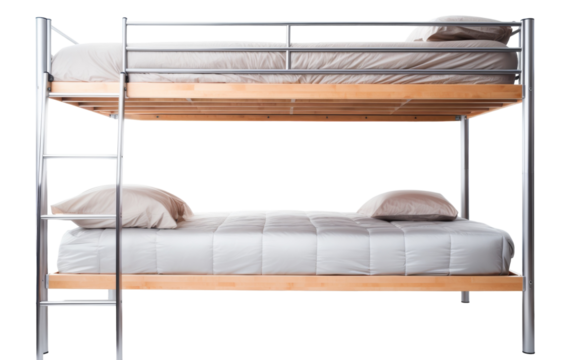 A modern and sleek metal loft bed frame offering space saving design and a minimalist on transparent background