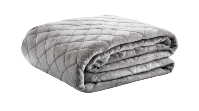 Soft, folded white weighted blanket providing comfort, warmth, and relaxation, perfect for improving sleep quality on a transparent background