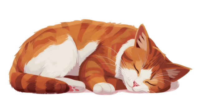 Cute orange tabby cat sleeping curled up isolated on transparent background