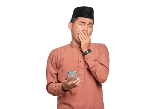 Young boy yawning with mouth wide open, eyes closed, isolated on transparent background facial expressions, human feelings