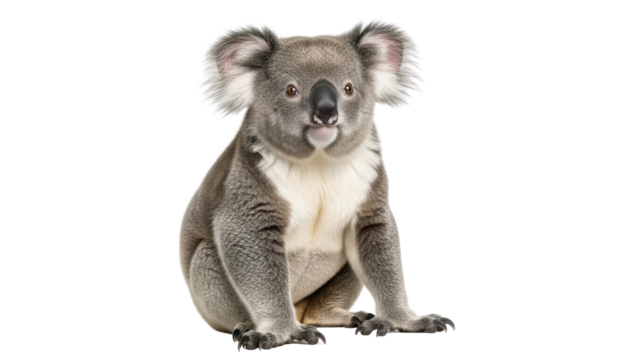 Adorable Koala Sitting Looking Forward isolated PNG with Transparent Background
