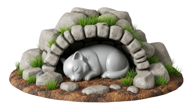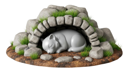 Brown cat sleeping peacefully on green grass in natural daylight showing relaxed posture and soft fur texture calm outdoor scene captured in high detail isolated on white background