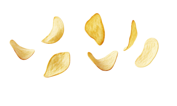 Flying ripple potato chips. potato fry isolated on transparent background, clipping path, full depth of field