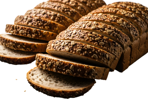 Energy booster of nutrition meal photo of sliced loaf of whole grain bread with seeds and grains, isolated on transparent background