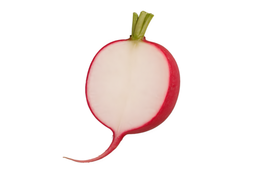 Freshly Sliced Radishes with Leaves Isolated on Transparent Background - Vibrant and Healthy Vegetable Slices