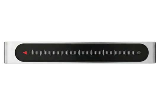 Silver metal electronic slider interface with digital scale display isolated on a transparent background