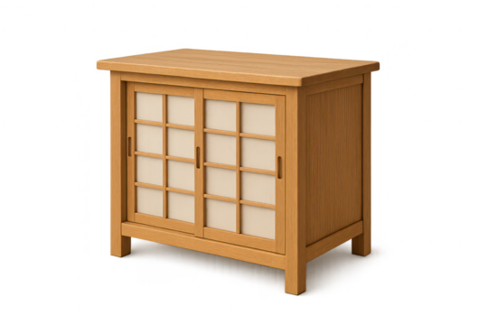 Traditional Japanese wooden cabinet with sliding doors isolated on transparent background