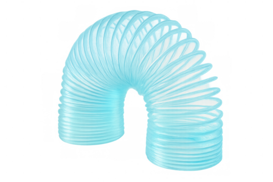 Close-up of a flexible light blue plastic slinky spring toy, isolated on a transparent background, ready for fun and games