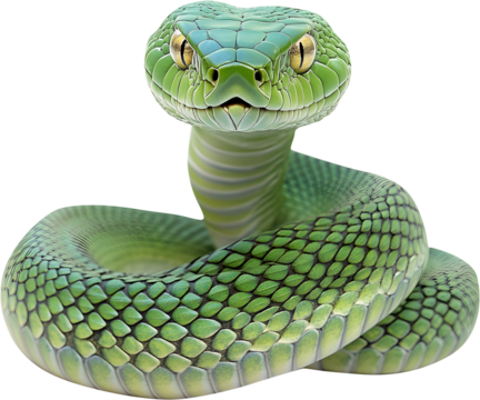 Vibrant green snake isolated on a white background PNG.AI GENERATED