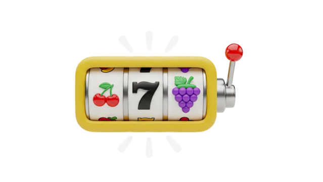 3D Slot Machine with Cherries, Sevens, and Grapes