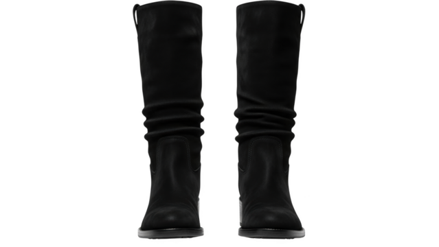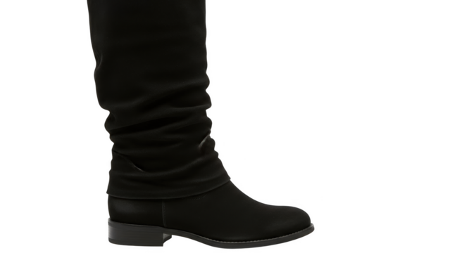 Black slouch boot with low heel on black background black boot women's boot