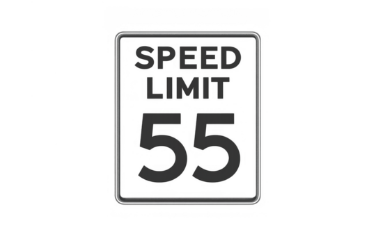Speed limit 55 sign controlling vehicle speed, ensuring road safety, and regulating traffic flow on a transparent background
