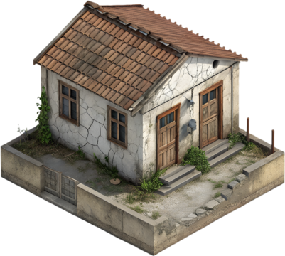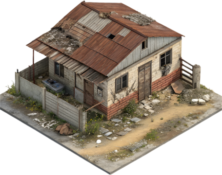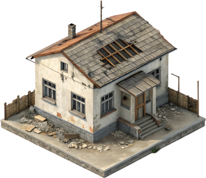 Striking image of a devastated building, symbolizing resilience and urban decay, ideal for impactful storytelling projects and design elements