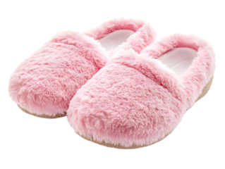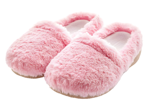 Cozy pink slippers made of soft, fluffy material perfect for relaxing at home.