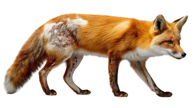 Majestic red fox standing isolated on transparent background, its vibrant fur and watchful gaze capturing the essence of wildlife in its natural habitat