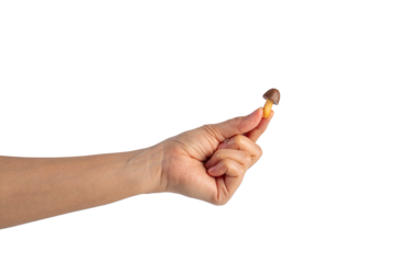 Small chocolate chip cookies in hand on transparent background