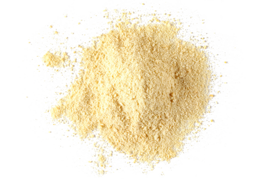 Brown cookie crumbs, fine to chunky, scattered on pristine matte white background, extreme macro, top-down, shallow depth of field, soft studio light, concept for baking and food styling