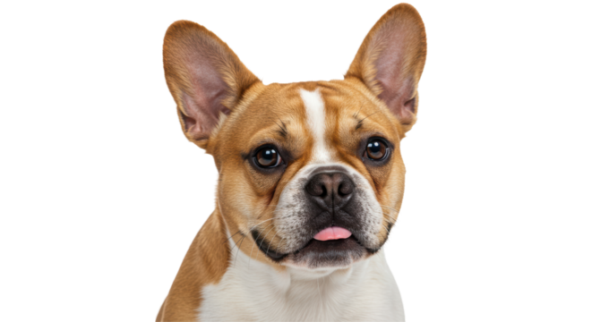 Cute, happy dog headshot smiling on a bright, PNG file of isolated cutout object on transparent background.
