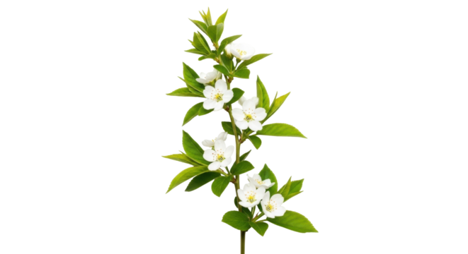 a branch of a plant with small white flowers on a transparent background, PNG image, PNG file, Generative art.