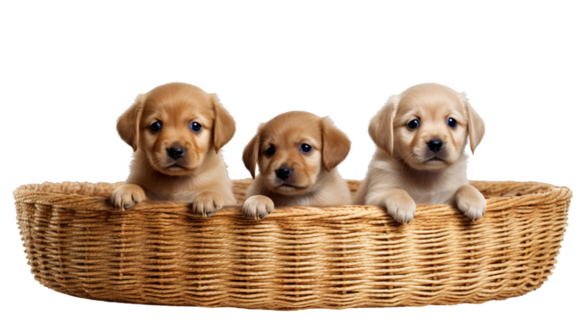little dogs of a basket cut out transparent isolated on white background ,PNG file ,artwork graphic design.