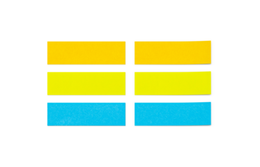 A set of small rectangular sticky notes with shadows. orange color, fluorescent yellow, blue