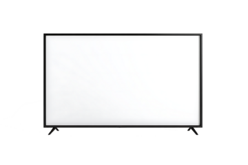 Modern flatscreen television with a blank white screen and black frame isolated on a transparent background