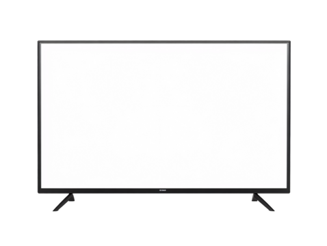 Modern large flat screen mockup png, sleek black tv isolated on all white or transparent background, hd cutout