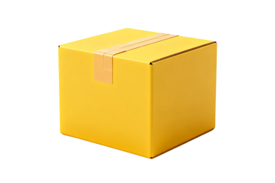 A bright yellow cardboard box with adhesive tape on it