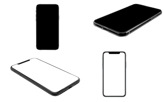 Black smartphone on transparent background, isolated mobile phone
