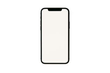 Angled view of a sleek, modern smartphone with a bright white screen