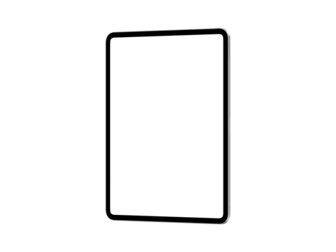A highly detailed, transparent tablet mockup PNG featuring blank screen in 10k resolution.