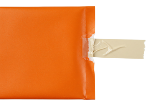 オレンジ色の包み紙 少し破れて 白い中身が覗く