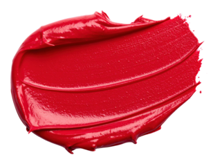 Thick textured smear of vibrant red lipstick with a glossy creamy finish.