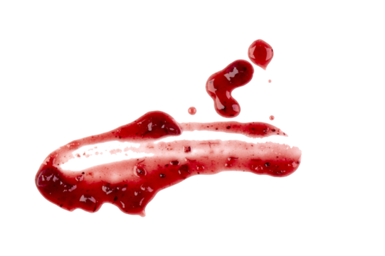 Sweet red berry jam, sauce as abstract smear stain isolated on white, transparent background, PNG