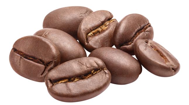 A rich aroma of freshly roasted coffee beans, dark and inviting, ready to brew a delightful morning beverage against a clean white background.
