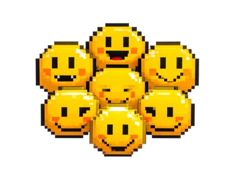 Pixelated Yellow Smiley Faces Clustered Together.
